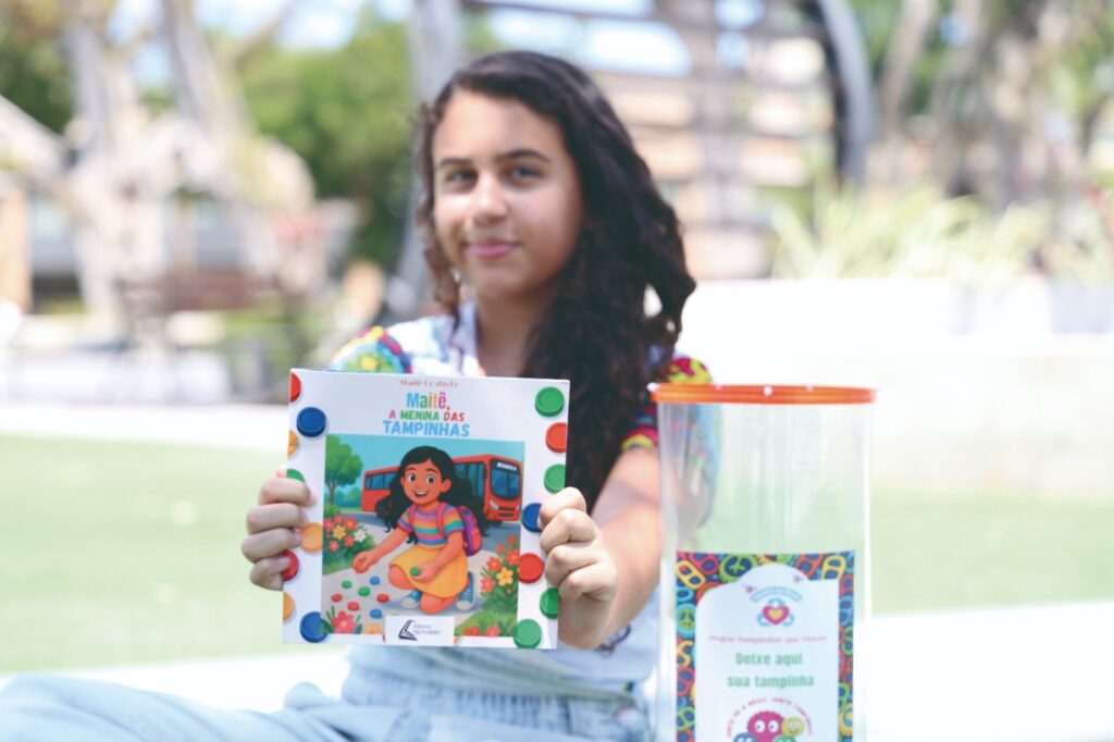 “Eu vi uma grande oportunidade de fazer a diferença com algo que iria para o lixo”, conta Maitê, que hoje arrecada tampinhas, mobiliza doações, participa ativamente das ações e inspira outras crianças e adolescentes a se envolverem.