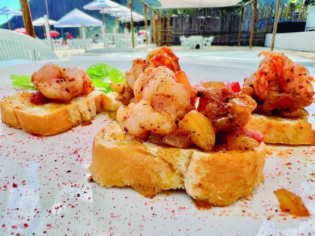 “A gente abriu entre o Natal e o Ano Novo de 2025. Num dia que tinha muita gente na praia e não tinha ninguém aberto. Tínhamos ido apenas para cuidar das finalizações da obra. Mas ao nos ver, as pessoas perguntaram se podíamos atendê-las. A gente entendeu aquilo como uma oportunidade para testar o nosso cardápio, que era basicamente gurjão e cerveja. A abertura oficial aconteceu no dia 1º, mas o quiosque ainda está em desenvolvimento. O que você vê hoje não vai ser o mesmo que daqui a um ano, porque o projeto final é bem diferente, só que demanda tempo e recurso financeiro”, conta Rubia, que além de cozinhar, também atende os clientes, para que a experiência vivida no local, seja cada vez melhor que a anterior.